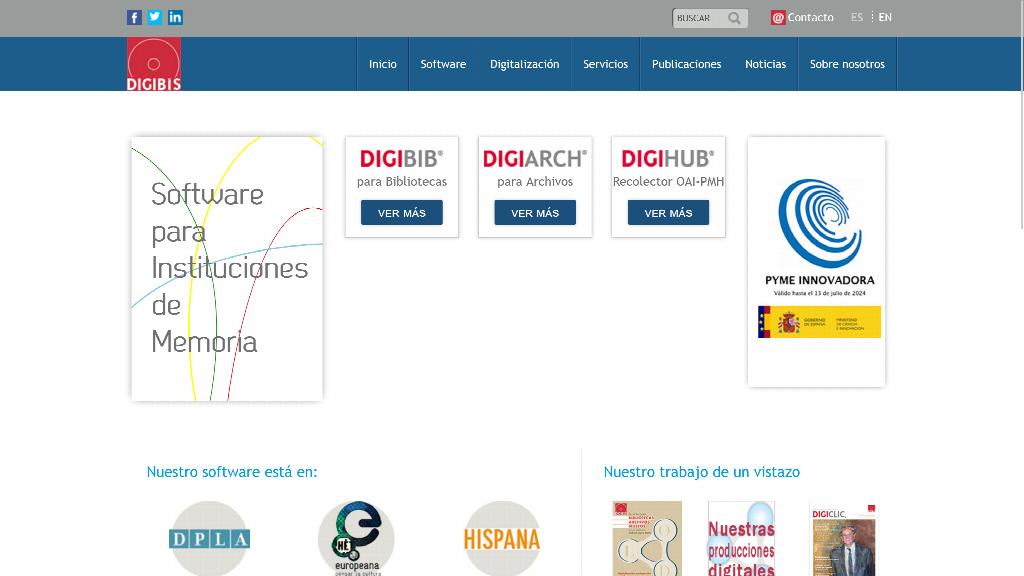 - Mantenimiento y desarrollo de nuevas funcionalidades de los productos web DIGIBIB, DIGIHUB y DIGIMUS, software para bibliotecas, archivos y museos respectivamente.